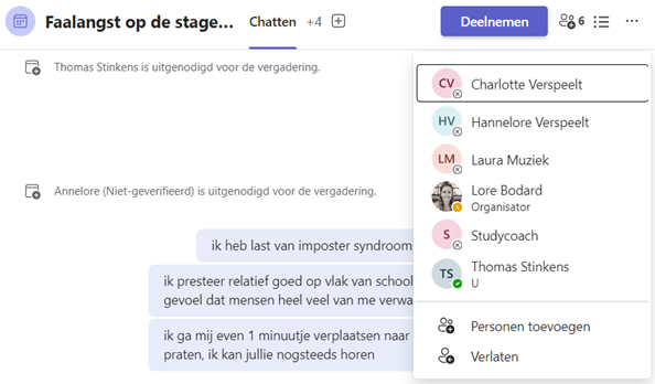 Het tweede bewijsstuk is een screenshot van het online gesprek waarin de activiteit heeft plaatsgevonden. In de screenshot is zichtbaar dat ik een van de deelnemers was van de activiteit.